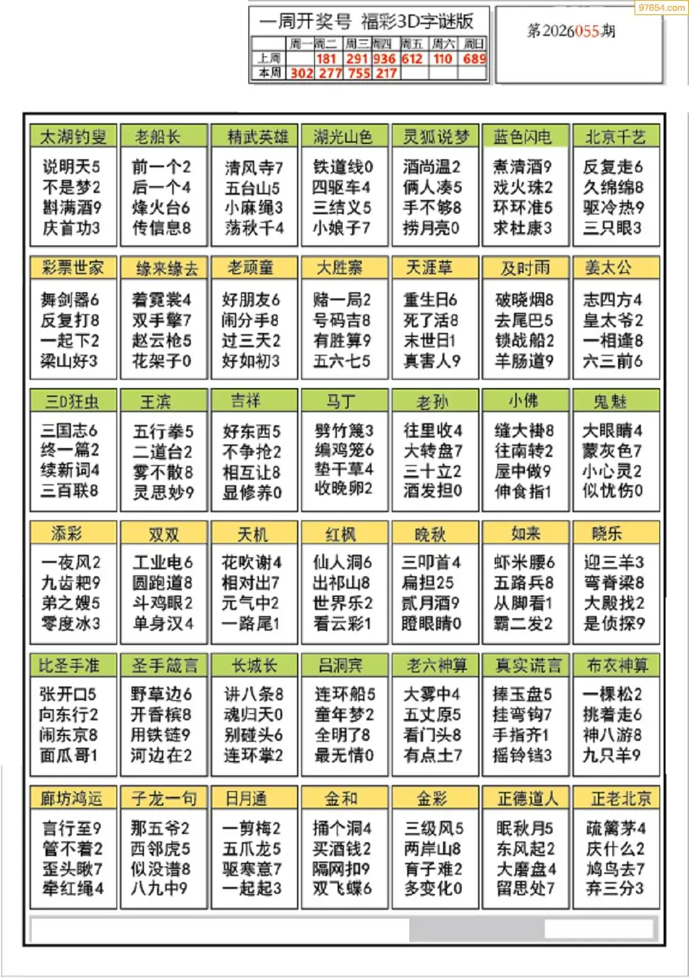 26年055期3d选号彩报图谜画谜
