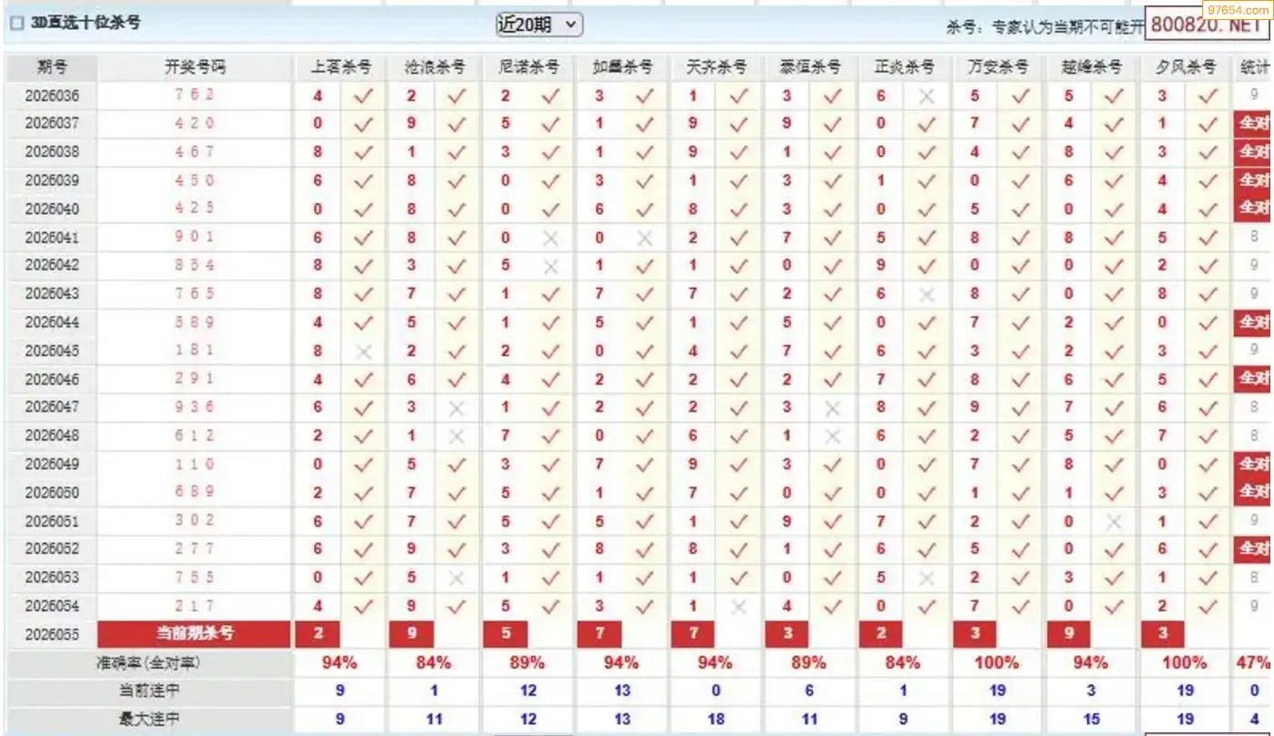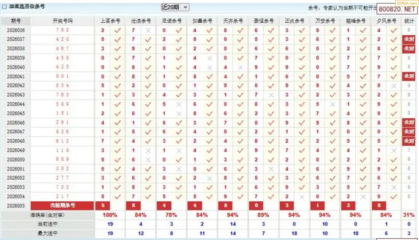 胡八一3d26年055期杀号一胆 7连中