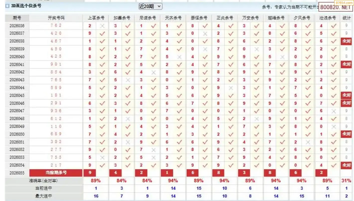 福彩3D26年055期于海滨杀独胆 9连中