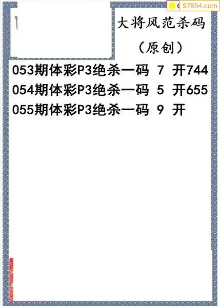26年055期大将风范p3杀码体彩图谜