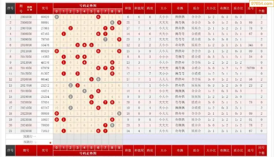 056期排列三历史号码对比图+数据走势分析