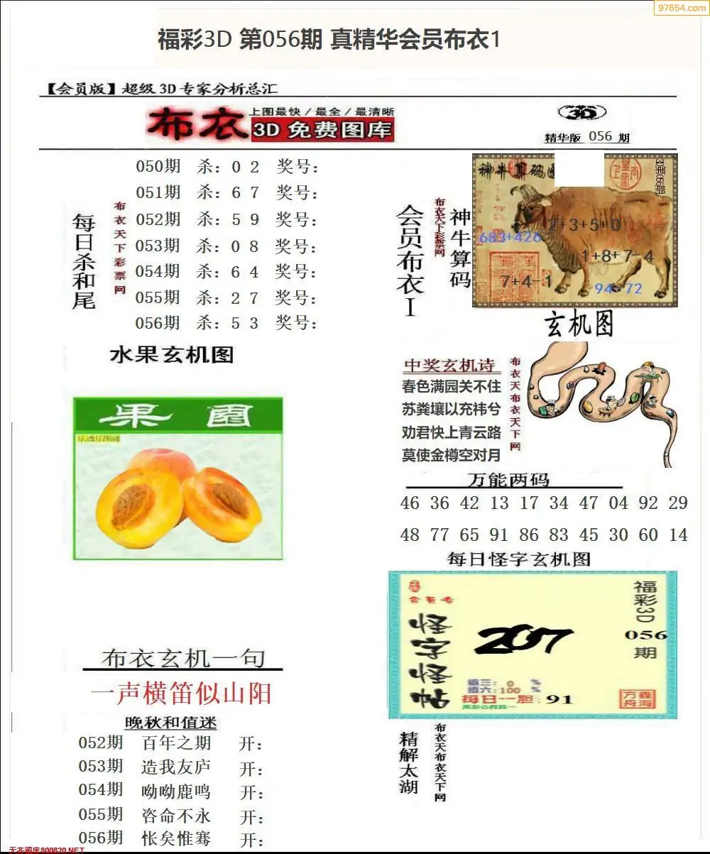 2026056期会员布衣3d图库