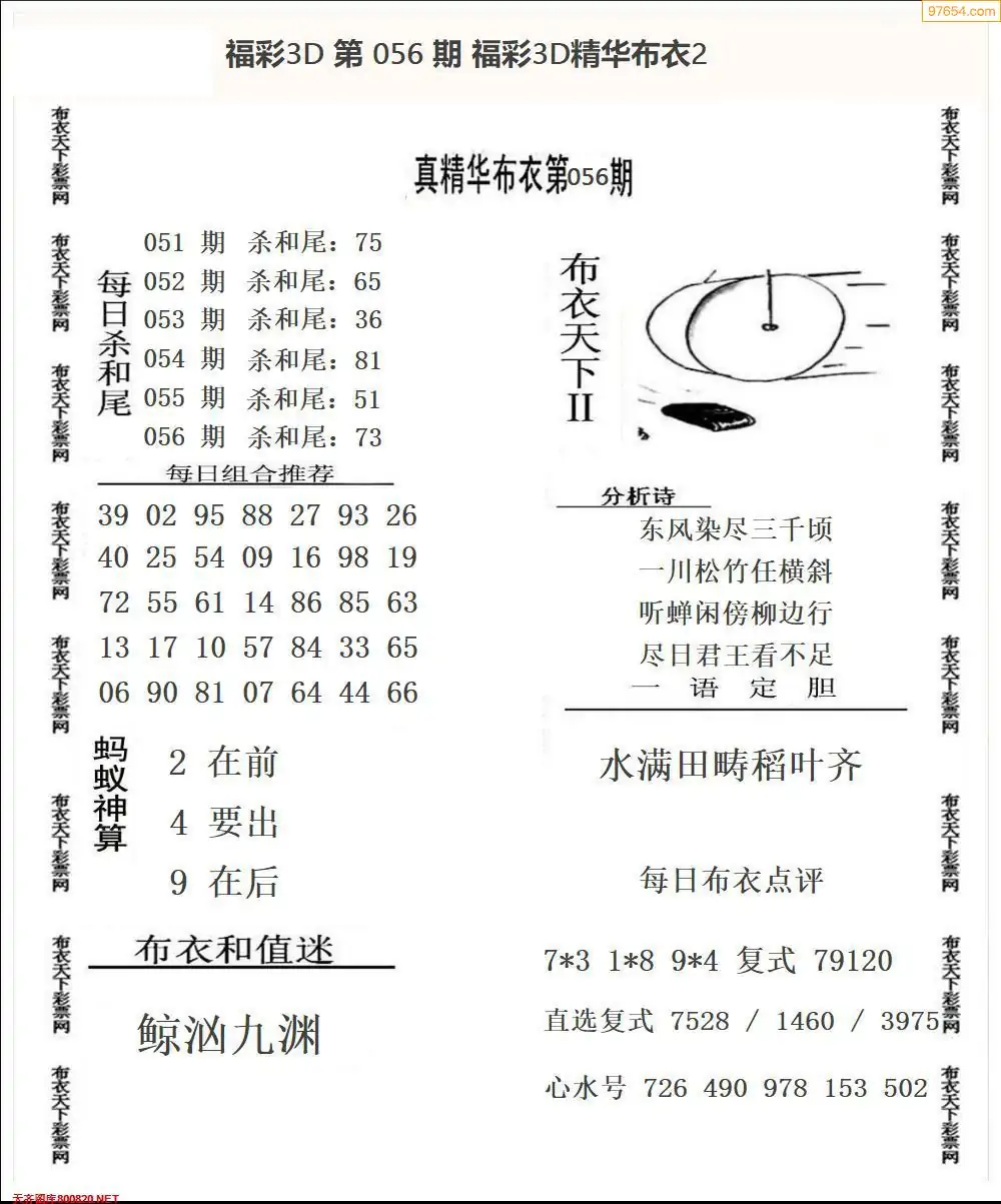福彩056期3d真精华布衣+布衣早报(转载)