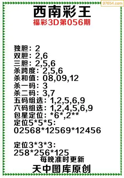 056期原创资料西南彩王当期预测