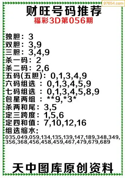 3D原创056期旺财出号推荐