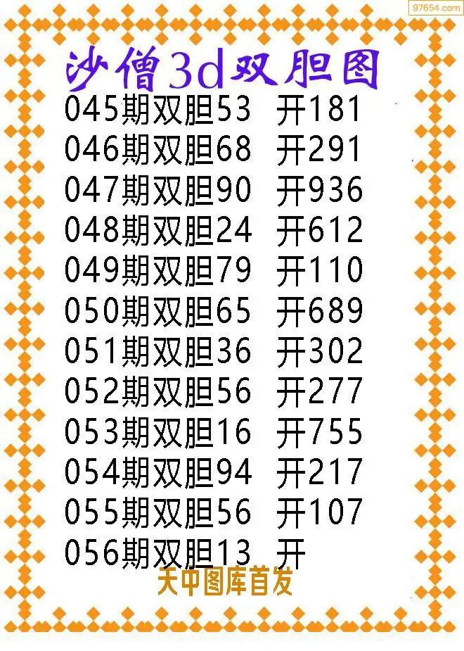 056期97654本站收集胆码出号预测