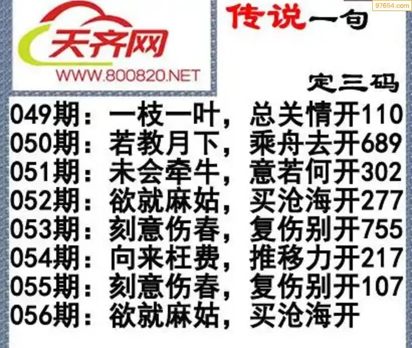 福彩3d26年056期字谜传说一句定三码