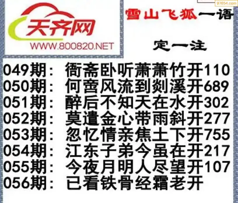 彩票3d字谜056期雪山飞狐一语定一注