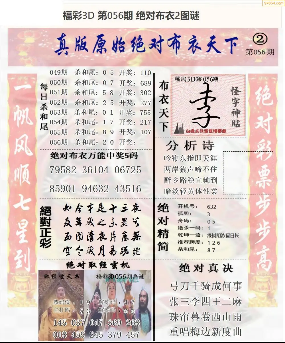 26056期早版布衣天下3D图迷