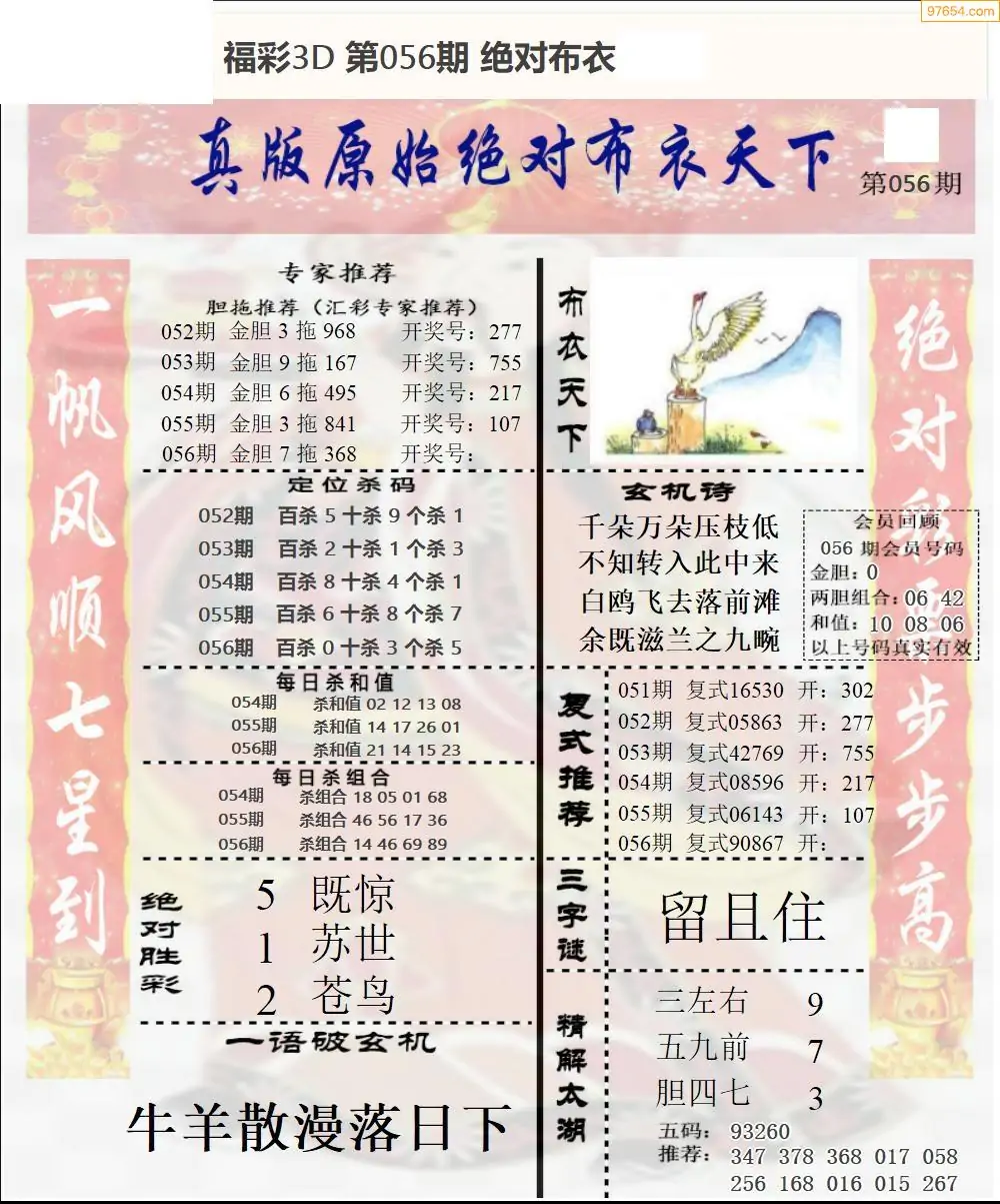 福彩056期3d真精华布衣+布衣早报(转载)