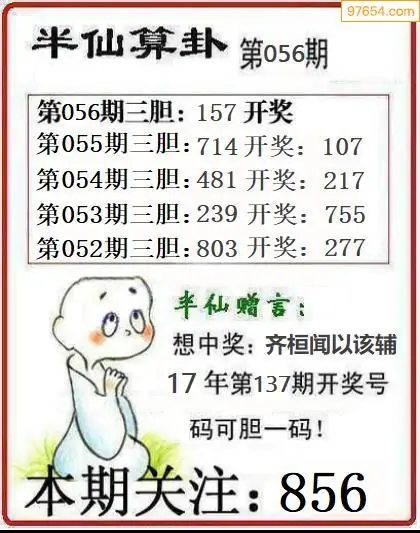 056期97654本站收集胆码出号预测