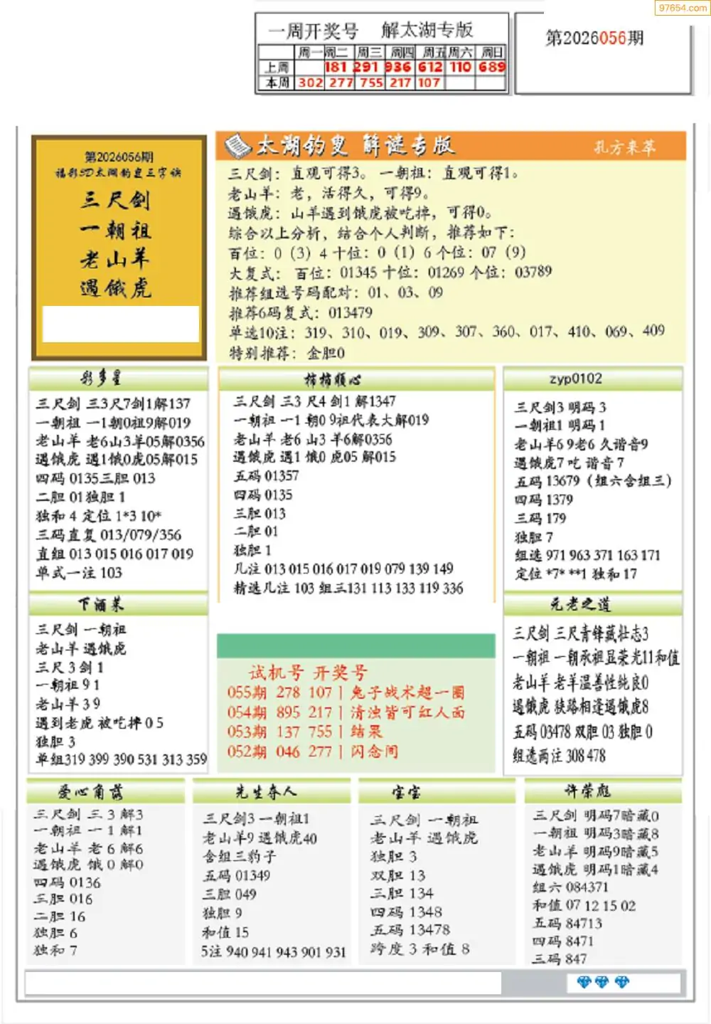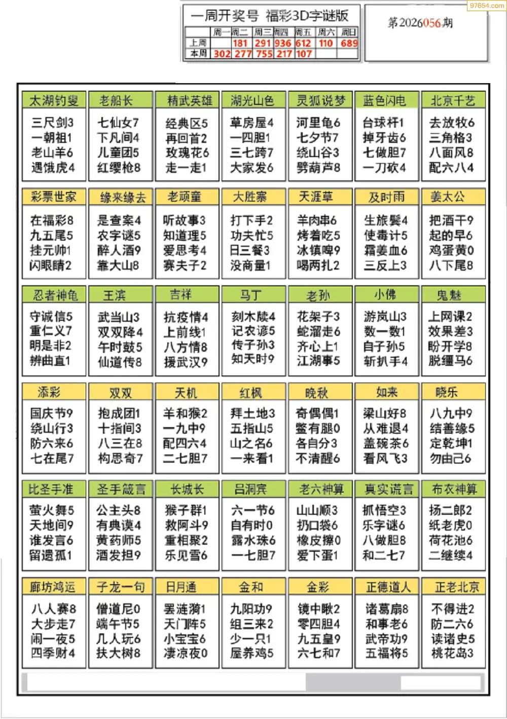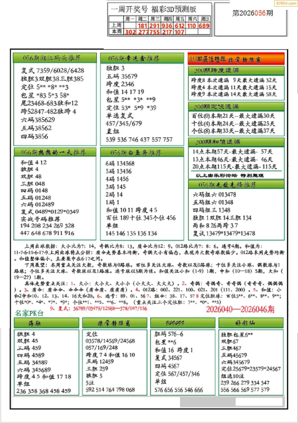 26年056期3D各板块资料整合汇总