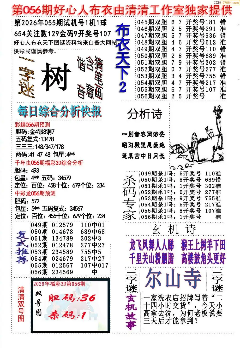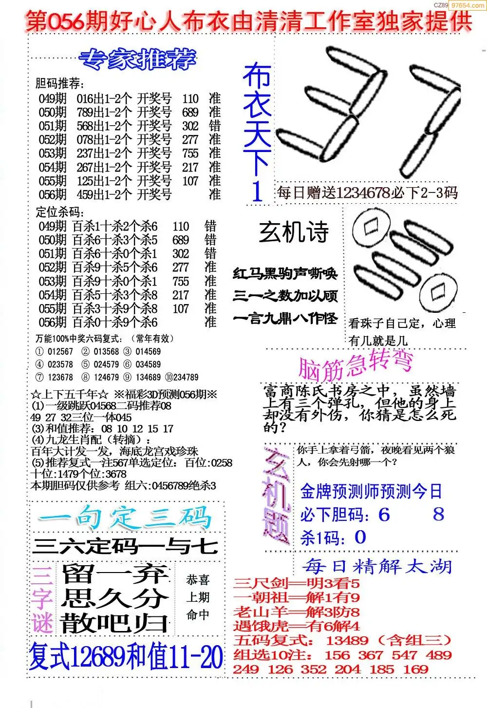 福彩056期3d真精华布衣+布衣早报(转载)