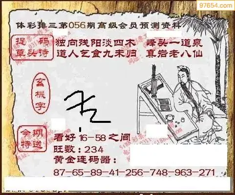 26年天吉体彩P3玄机怪字056期图迷