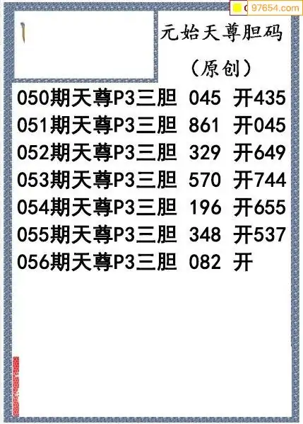 26056期元始天尊排列3胆码图
