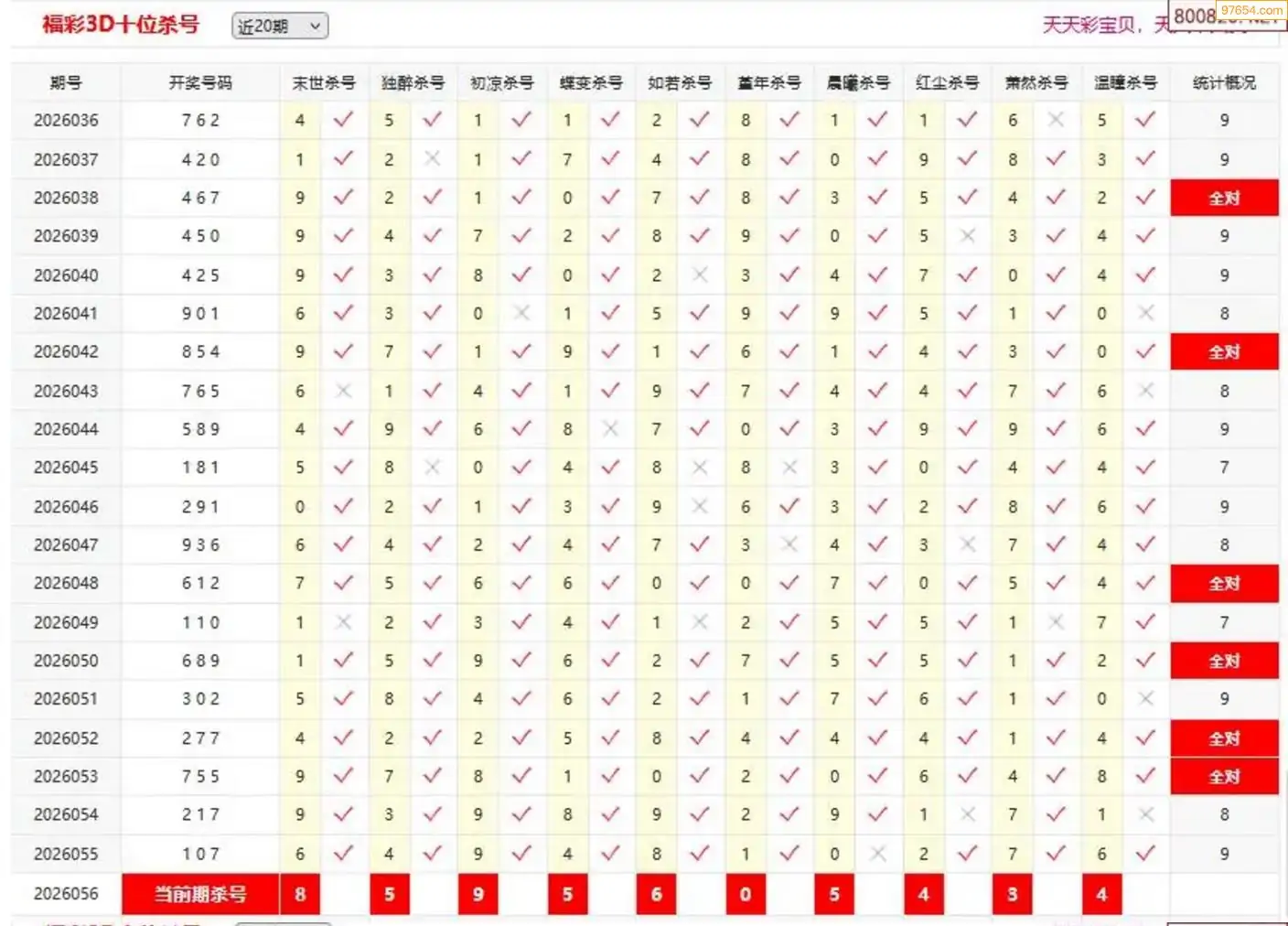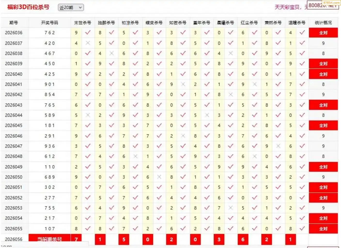 福彩3D26年056期于海滨杀独胆 10连中