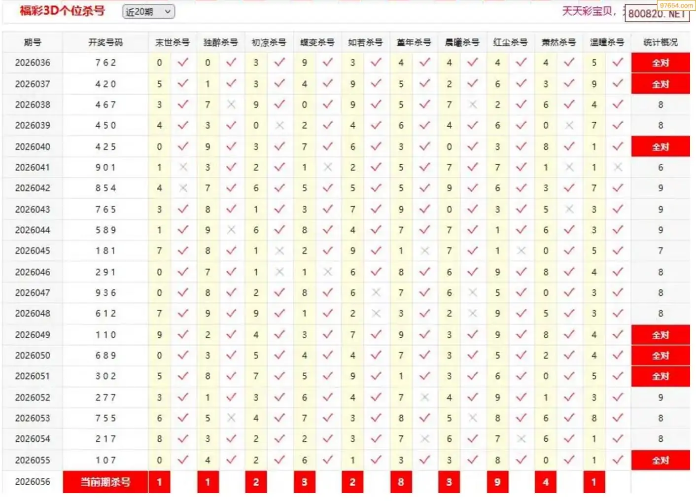 3D056期天中财神原创杀码条件汇总