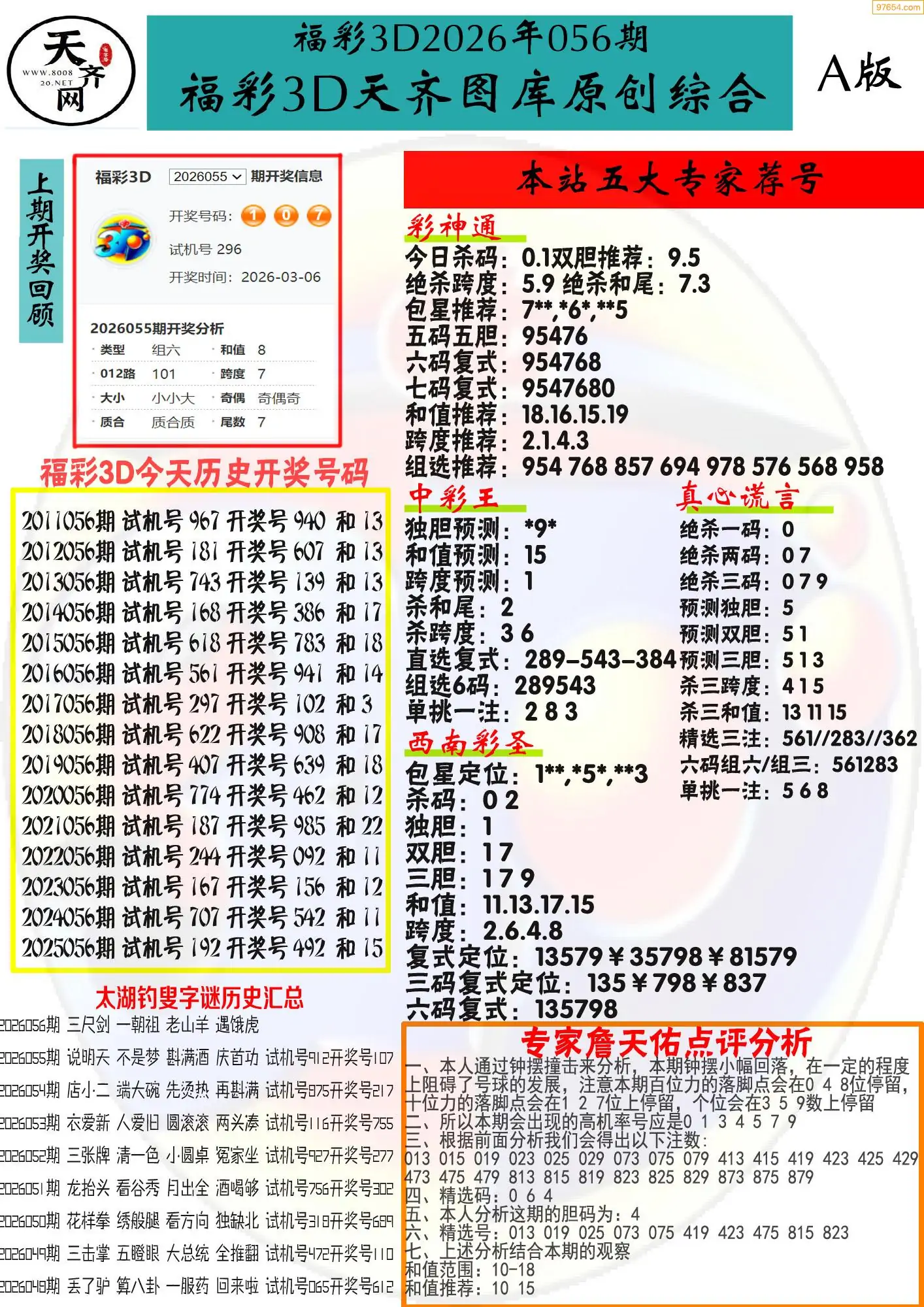 福彩3D057期天牛彩吧套图整合总汇
