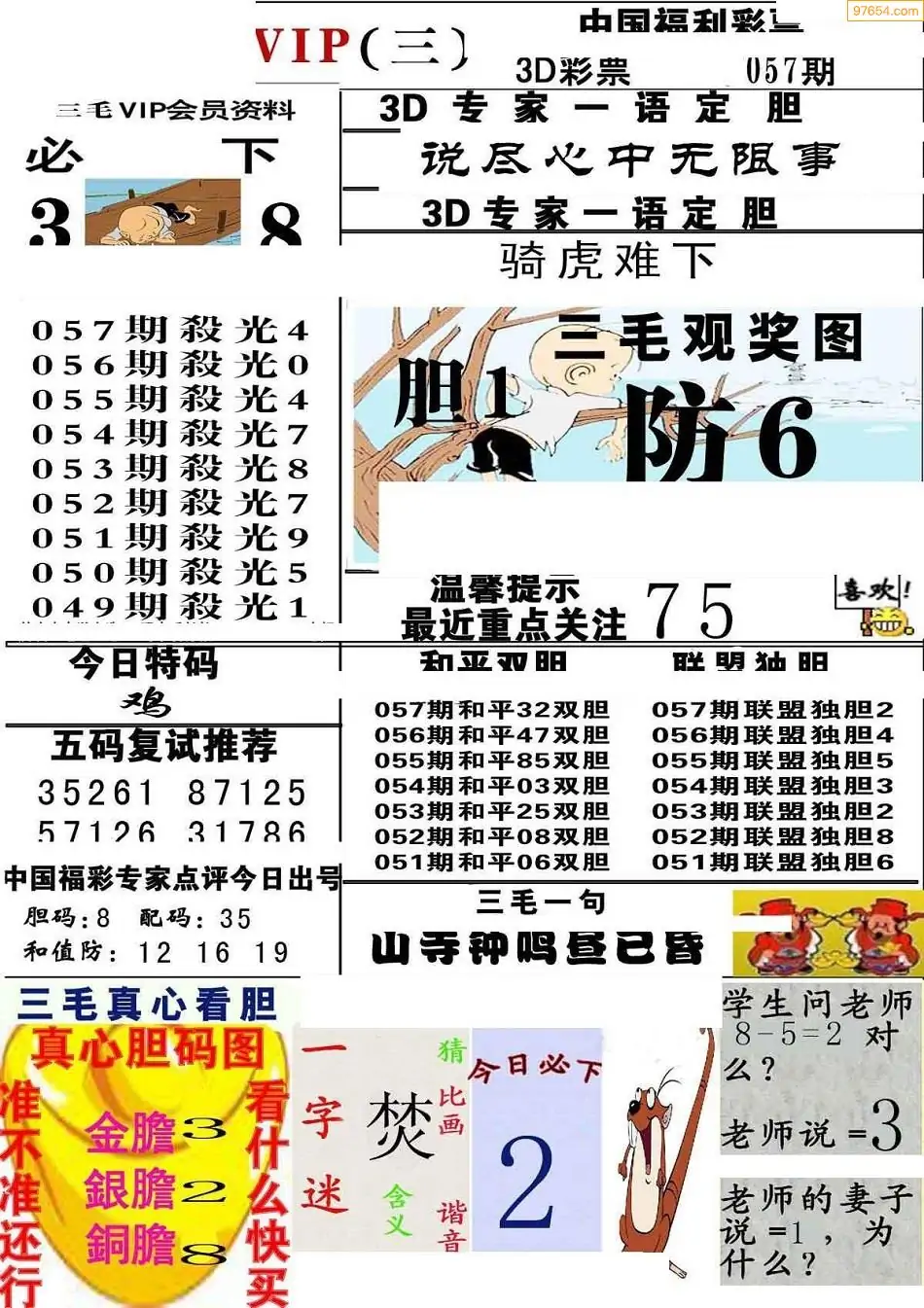 057期3D牛彩预测报+彩吧字谜报