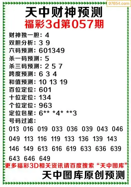 057期财神3d综合预测分析