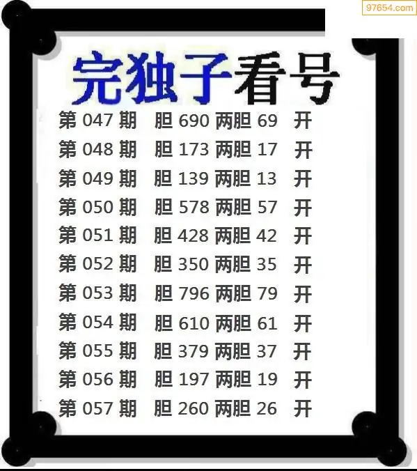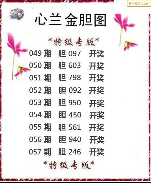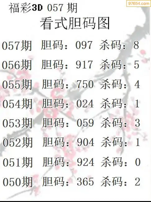 057期97654本站收集胆码出号预测