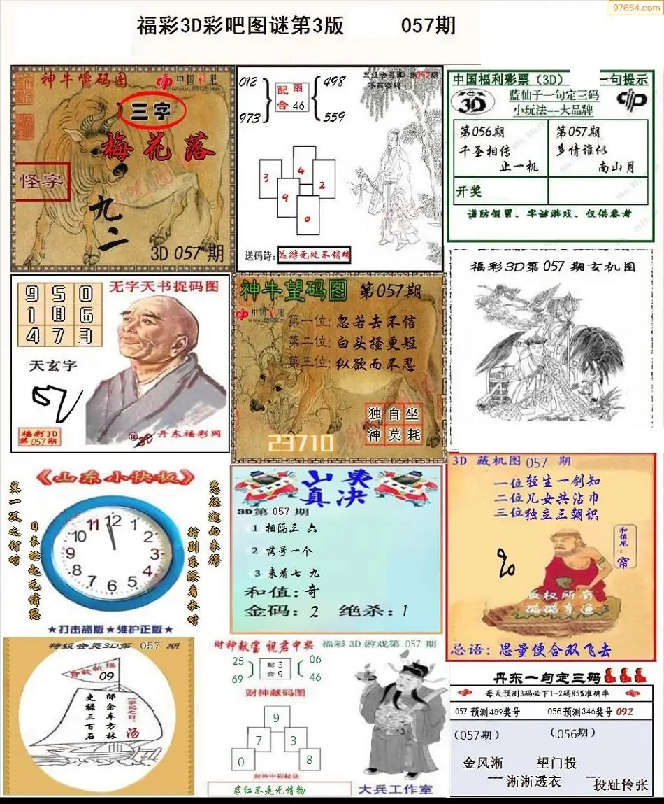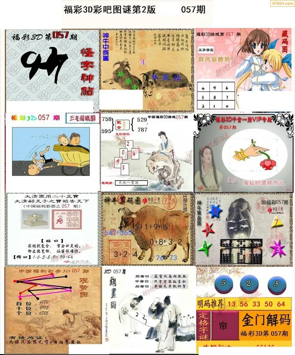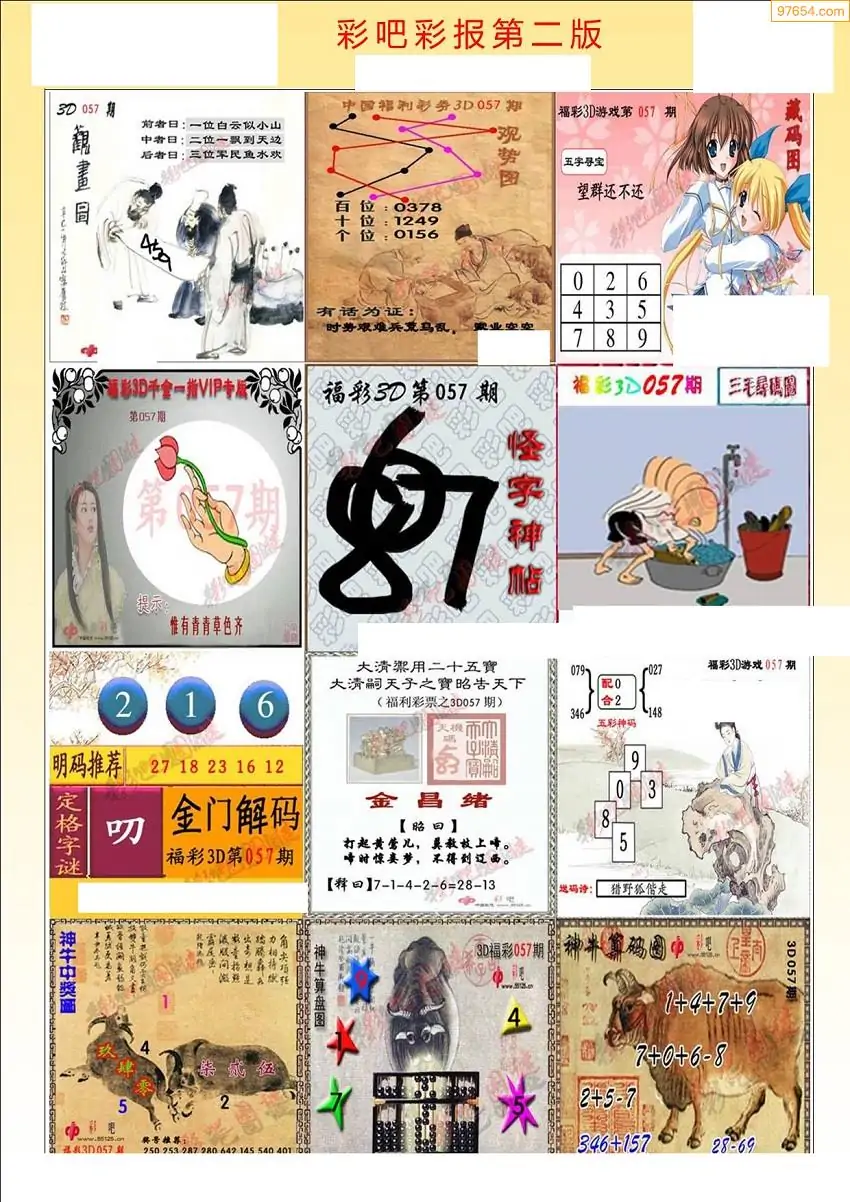 057期3D牛彩预测报+彩吧字谜报