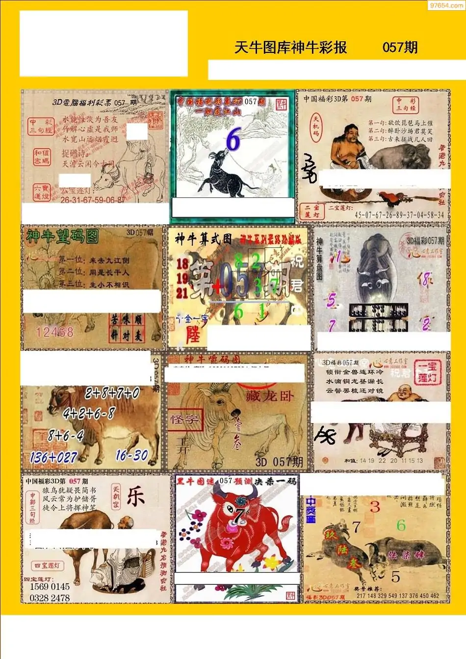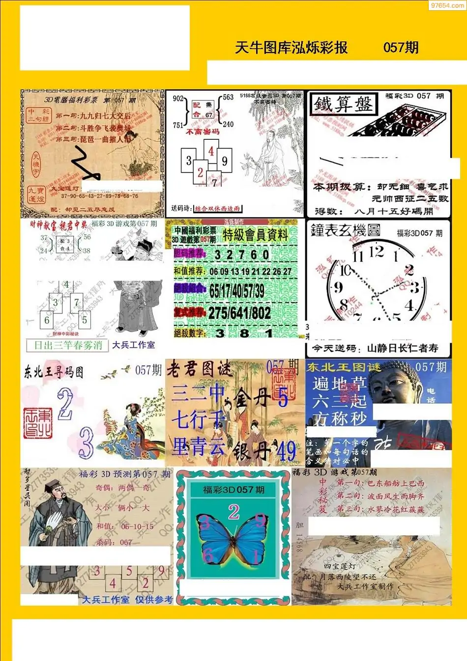 福彩3D057期天牛彩吧套图整合总汇