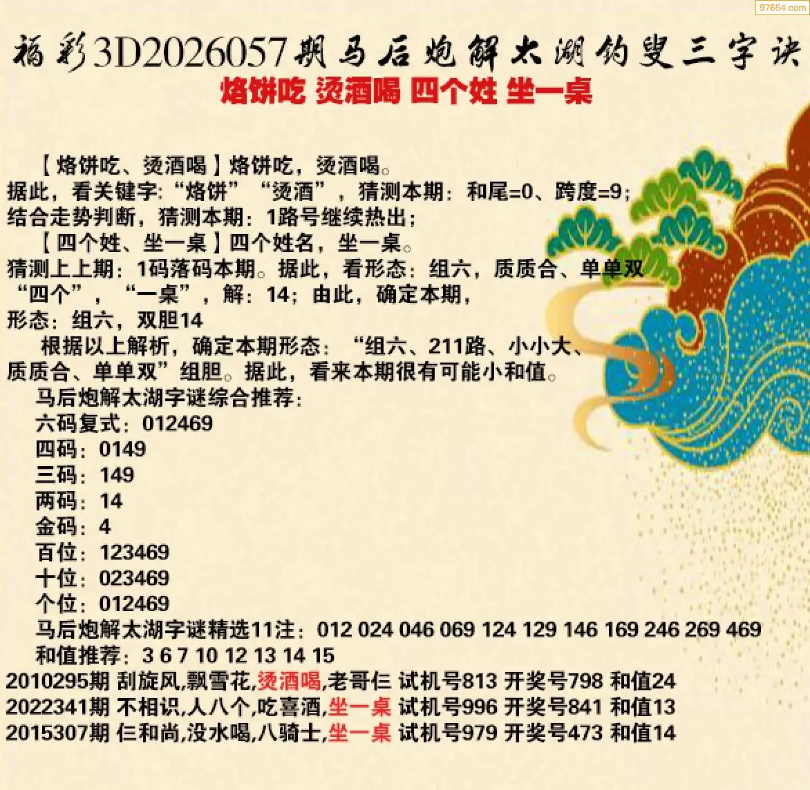 26057期福彩3d太湖钓叟三字诀历史汇总