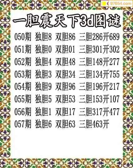 2026057期彩彩网3d原创图迷搜集(天中整理)