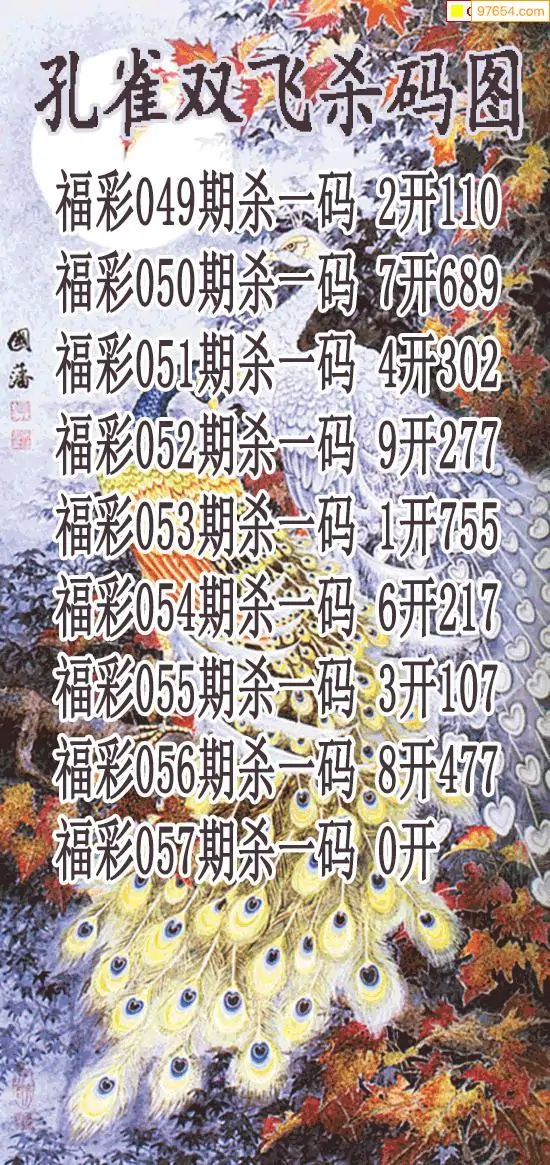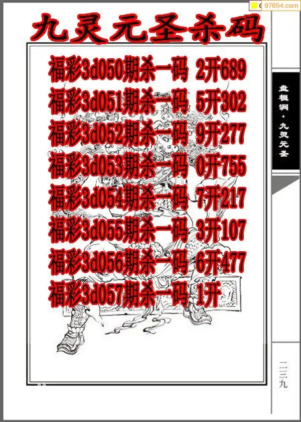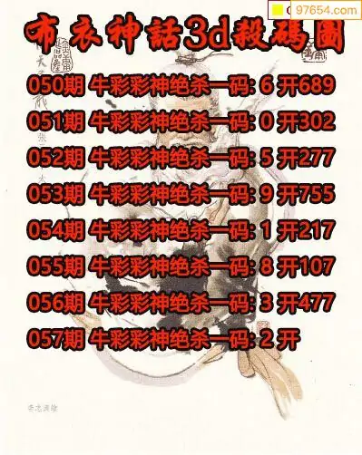 牛彩网057期福彩杀码图汇总 杀:98