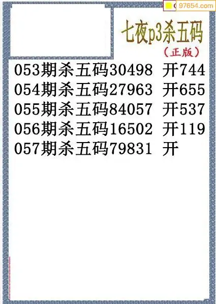 26年057期七夜今期排列3杀码图谜