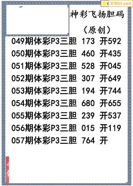 26057期神彩飞扬体彩P3三胆图谜