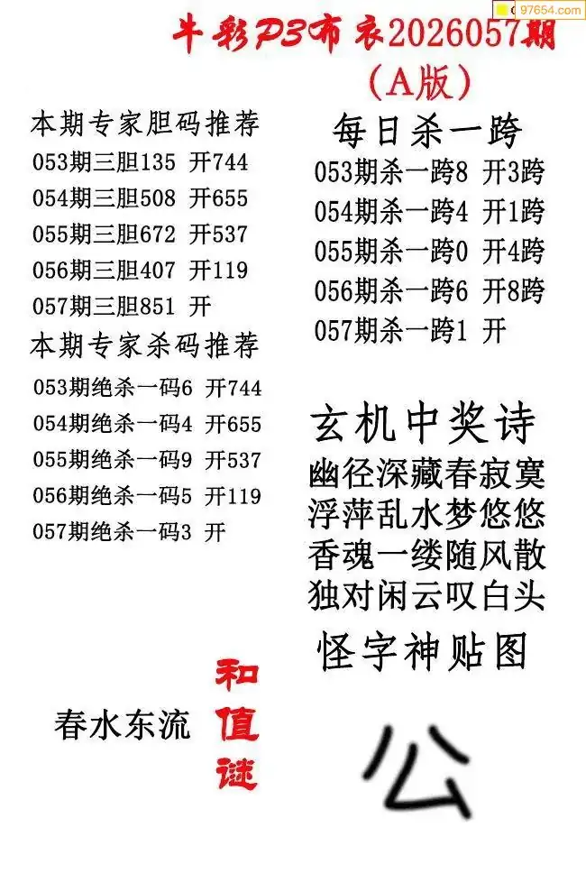 057期清清漫玄系列体彩p3图谜_排三图库p3图库打印