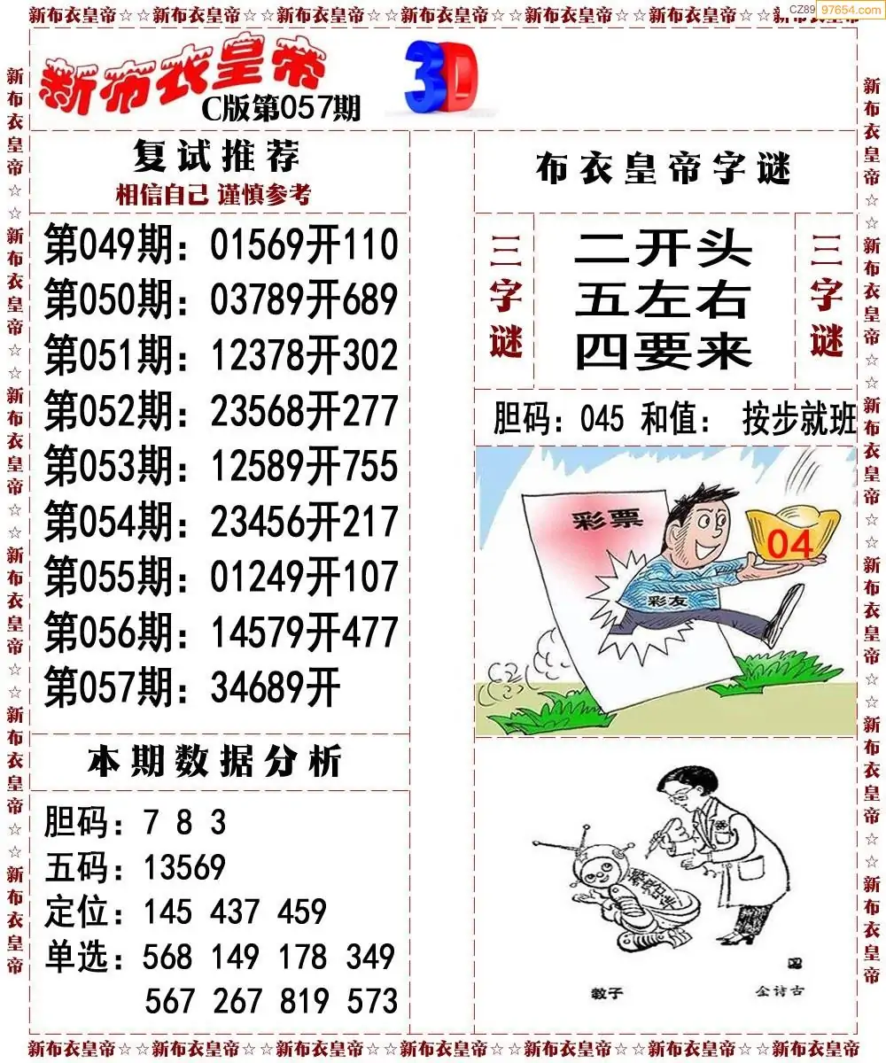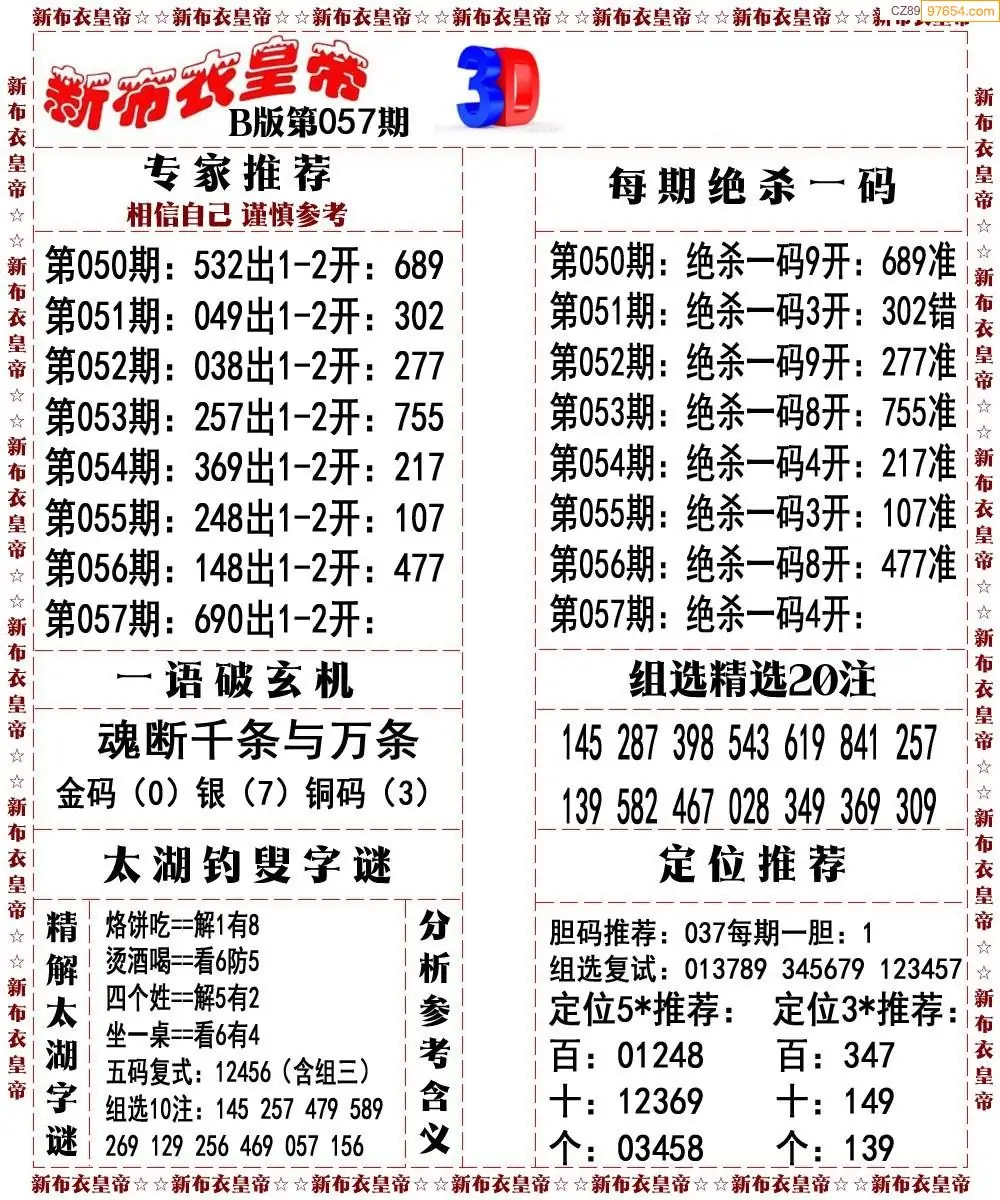 26057期3d新布衣皇帝早间四版