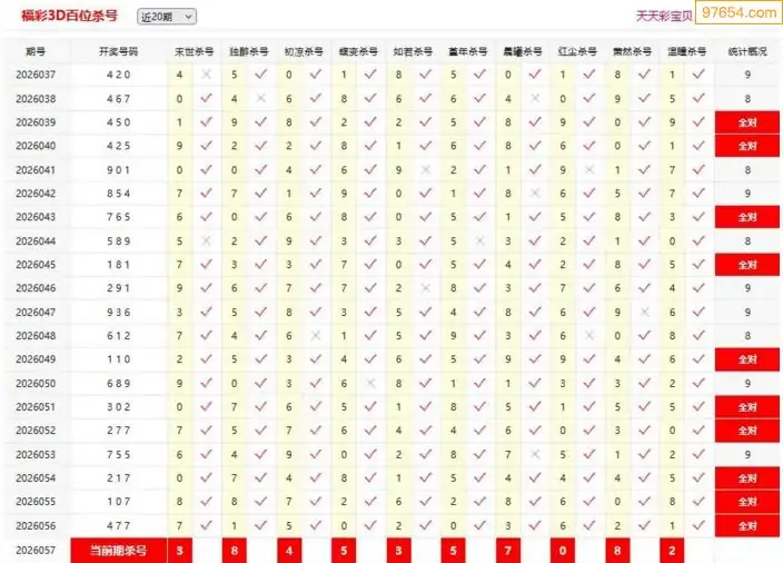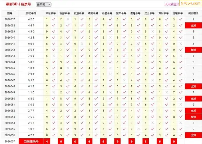 3D059期天中财神原创杀码条件汇总