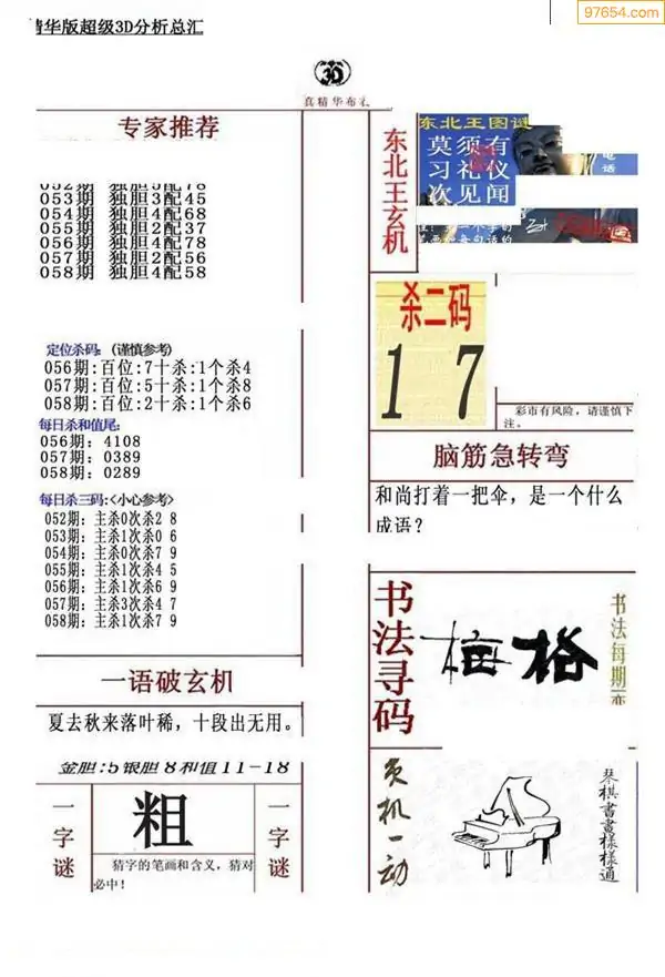 (3)2026058期3D预测总汇全图_福彩3d图谜字谜总汇