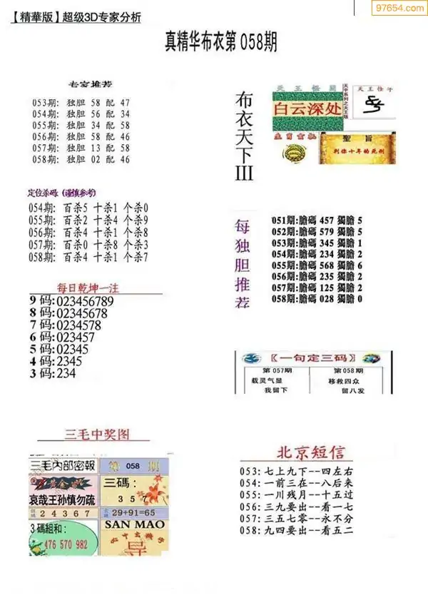 (2)26年058期本期3d图迷汇总_福彩3D图谜总汇图