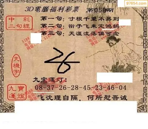 福彩26058期天庚大帝+九宝寻码图_九堡3d彩看图