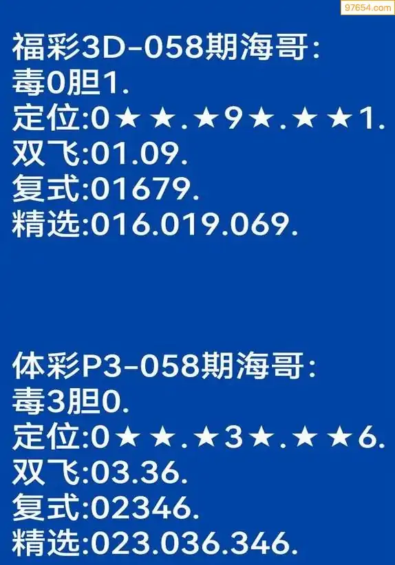 26年058期3d各路福彩专家分析3*3*3定位胆码汇总