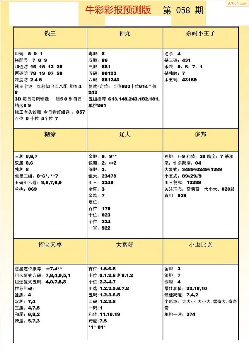 (8)26年059期今日3d各类彩报汇总