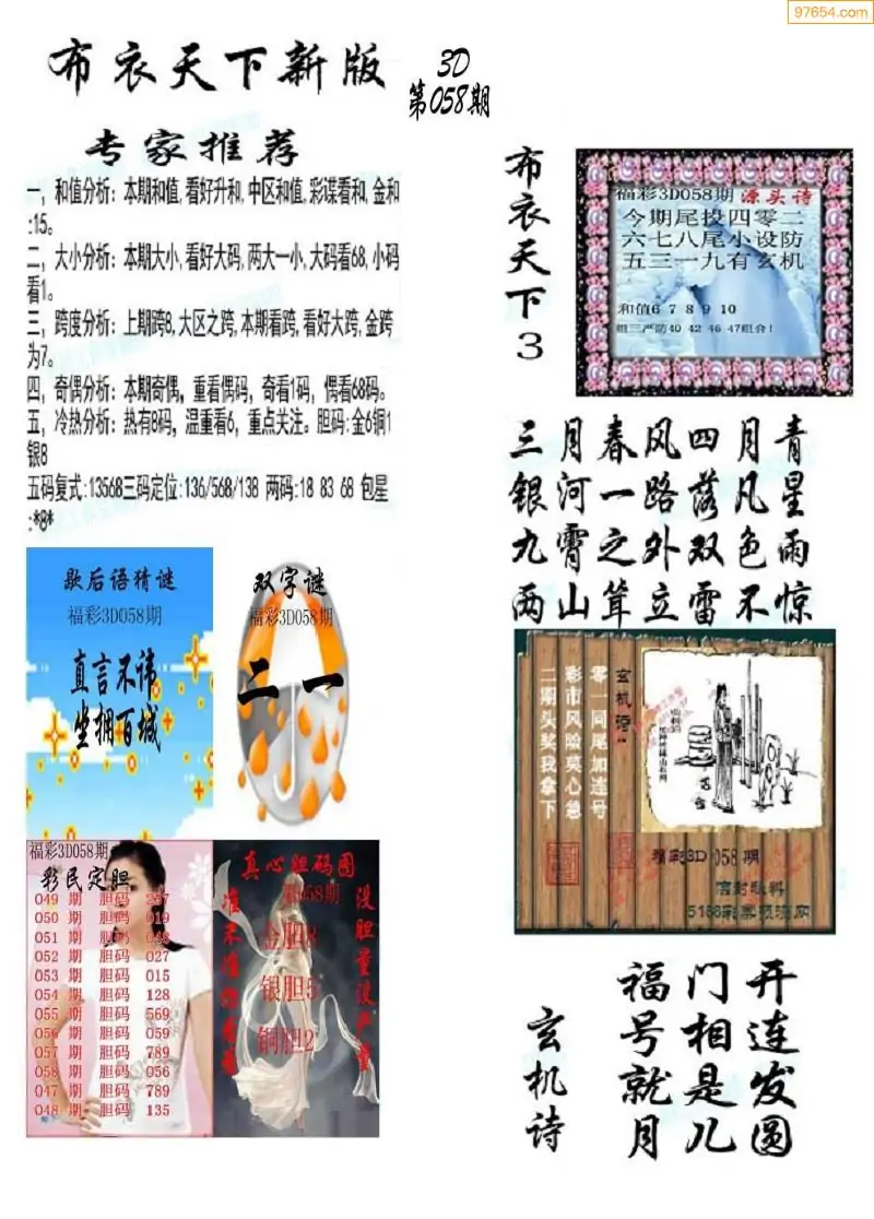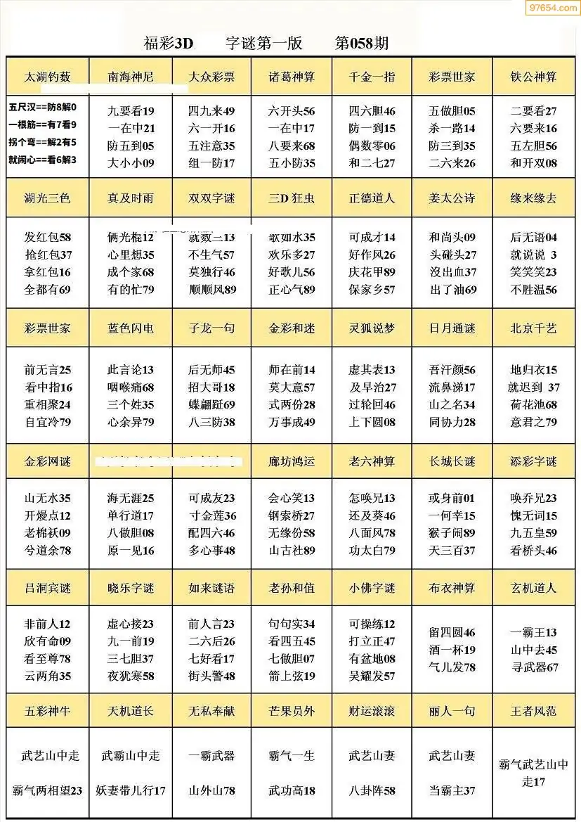 (5)26年058期福彩字谜图谜总汇