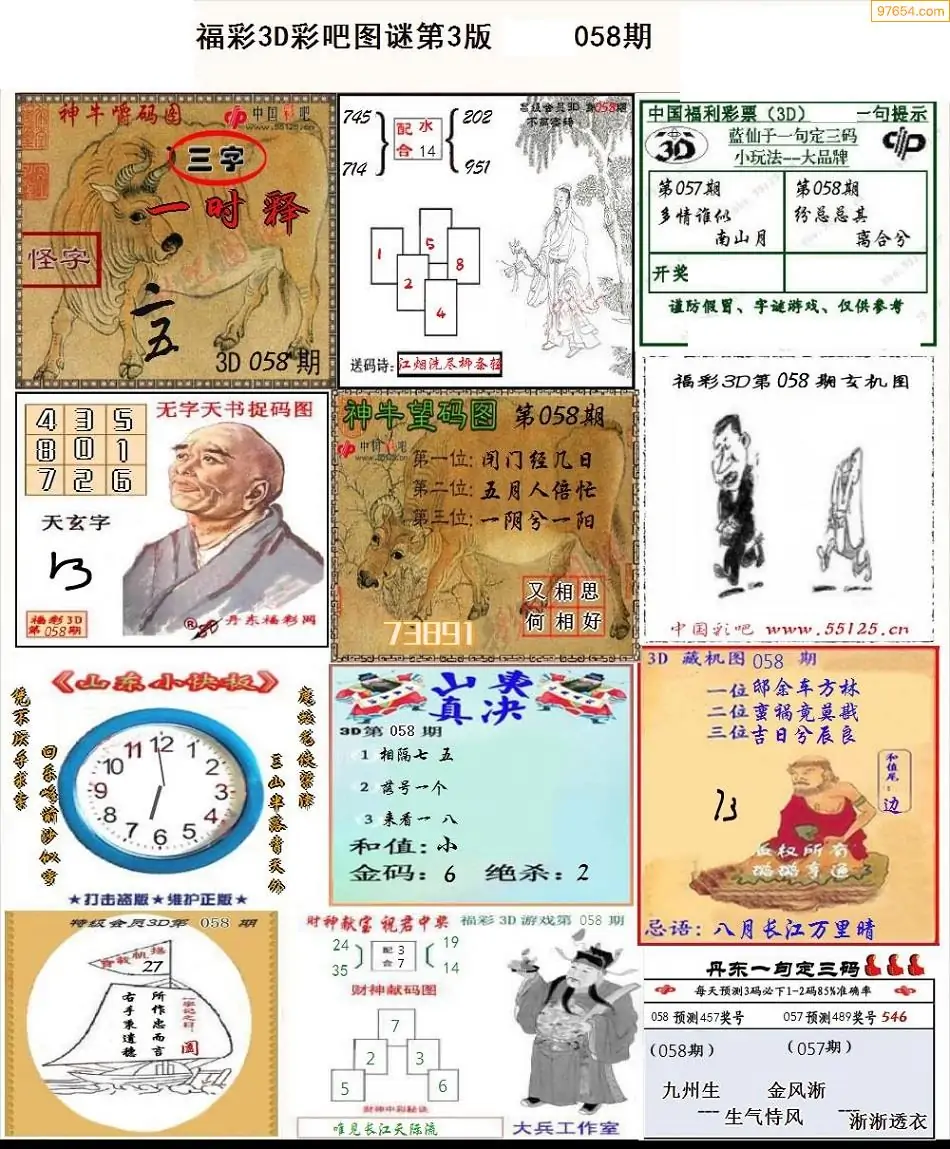 (3)2026059期3D预测总汇全图_福彩3d图谜字谜总汇