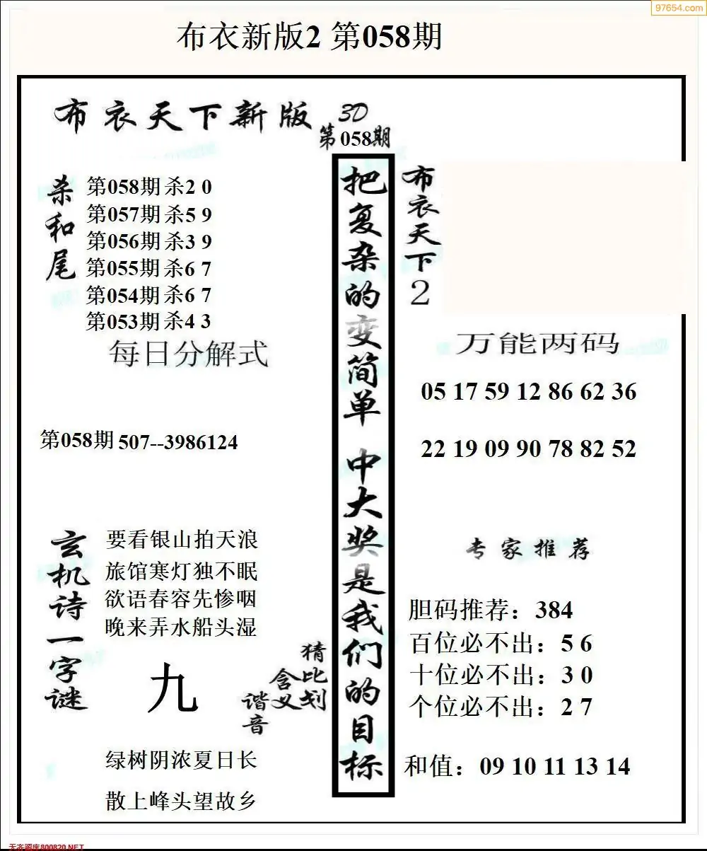 (9)26年059期当期全站杀号定胆图