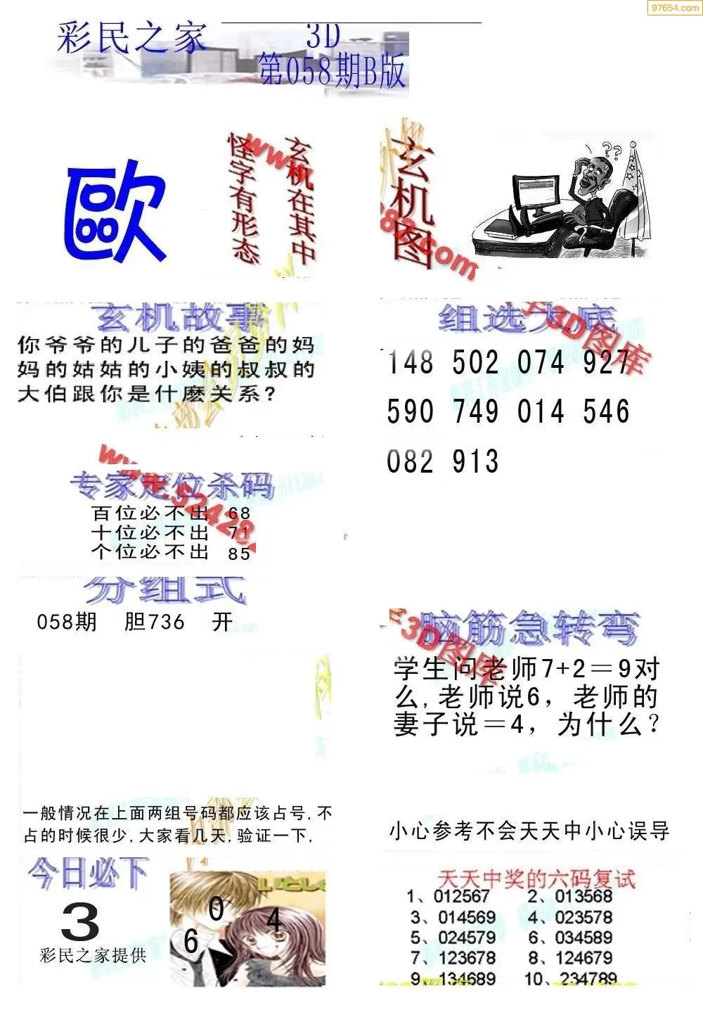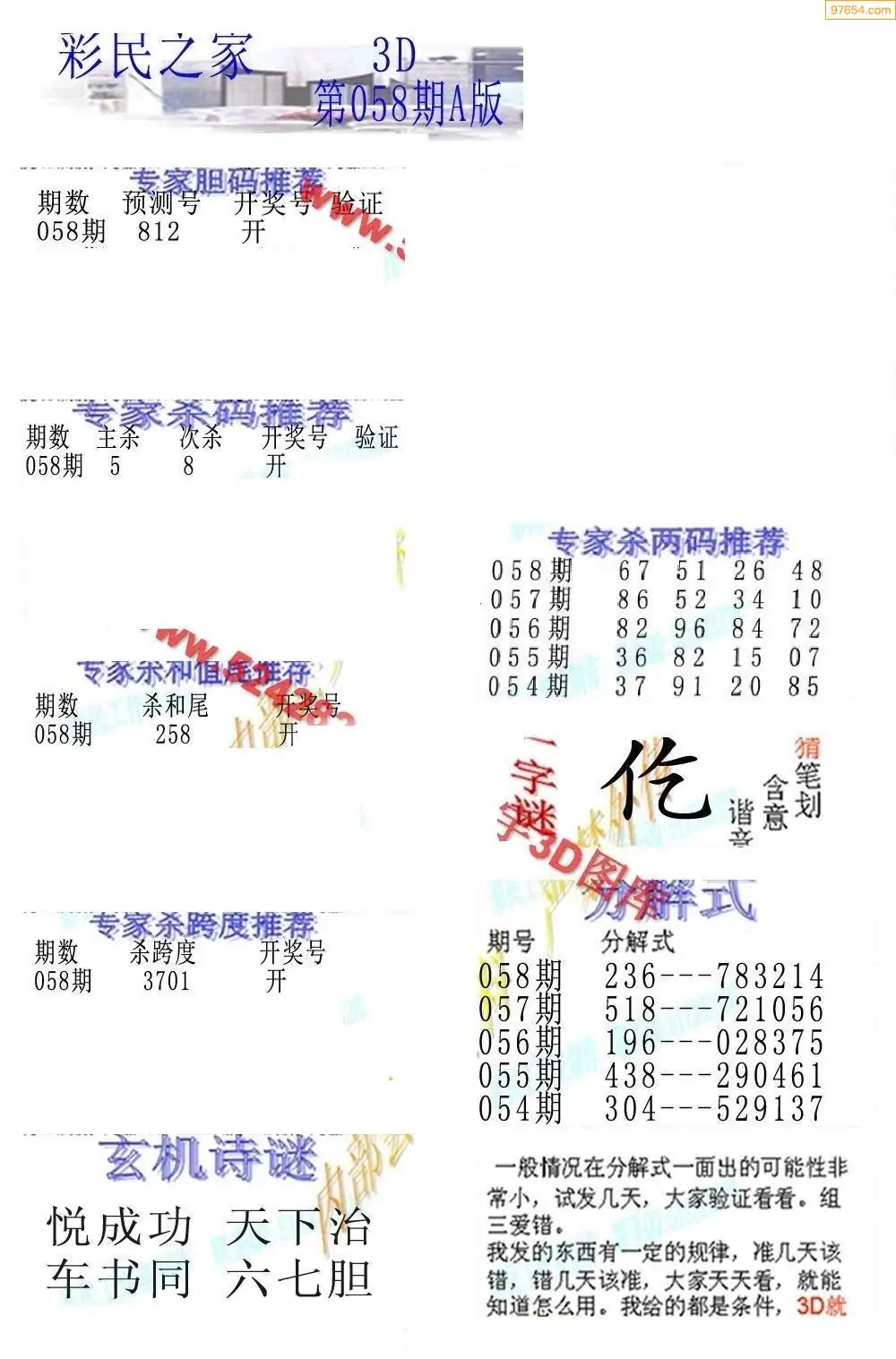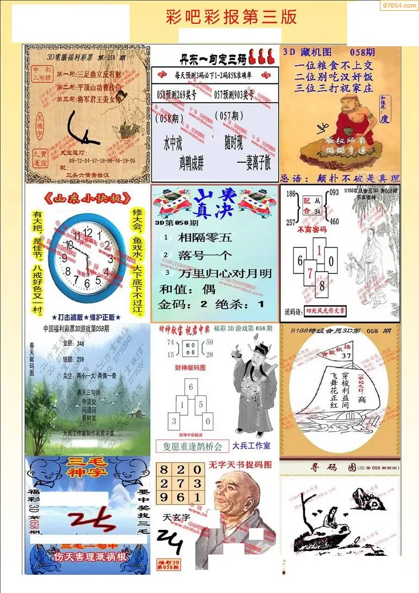 (8)26年058期今日3d各类彩报汇总