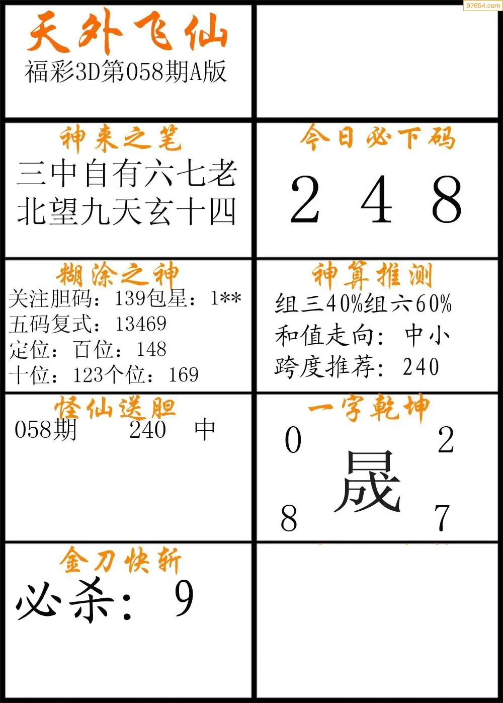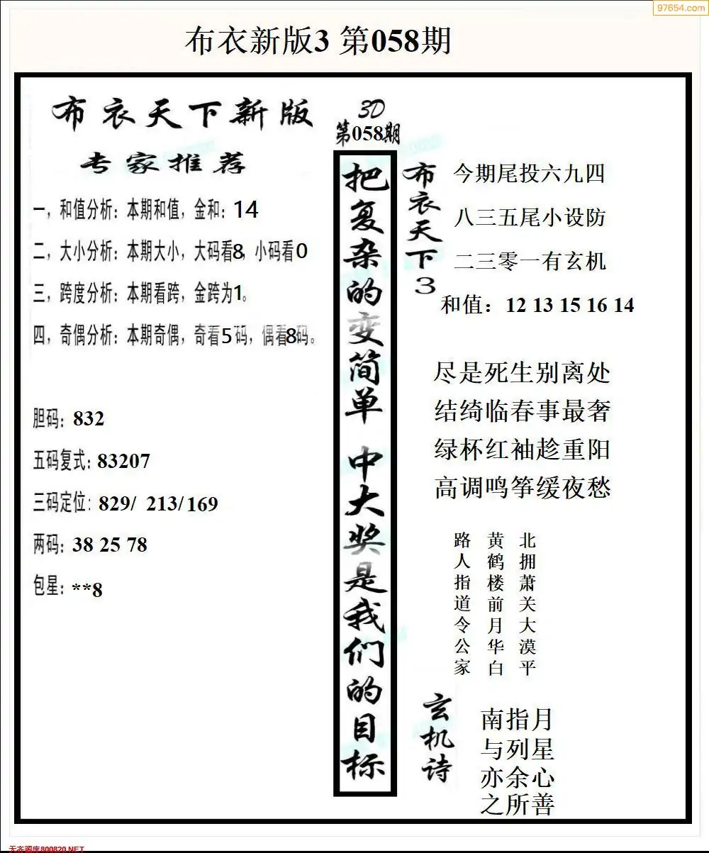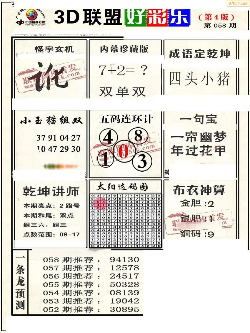 (8)26年058期今日3d各类彩报汇总