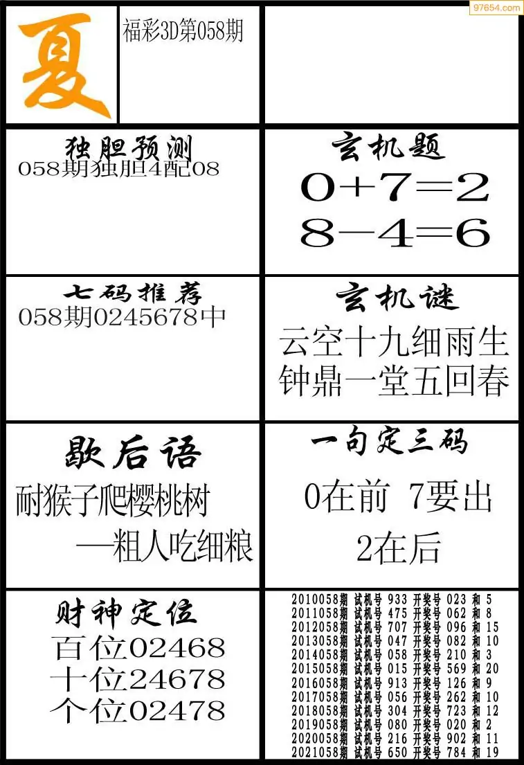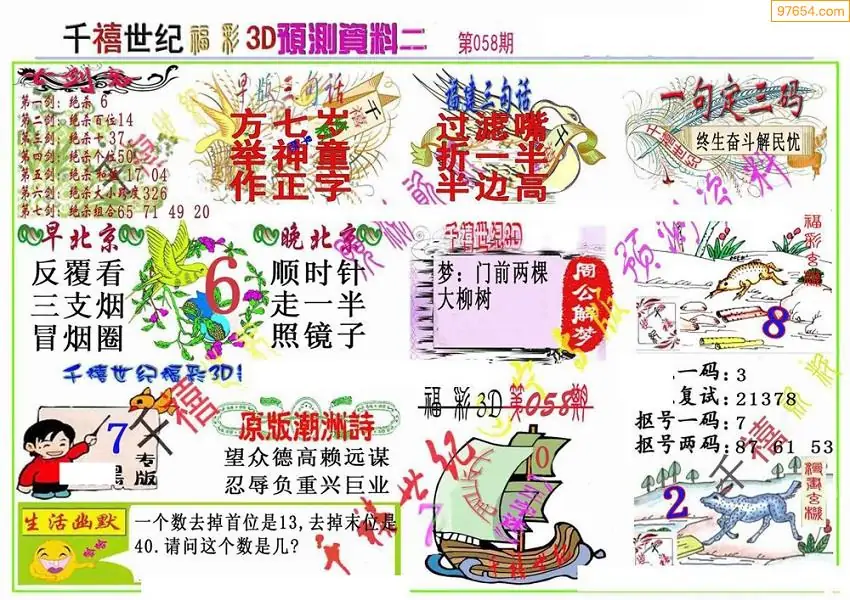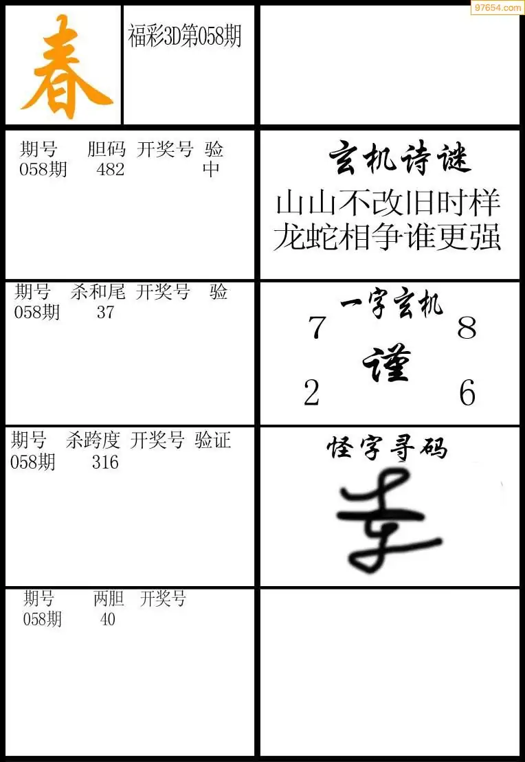(5)26年058期福彩字谜图谜总汇