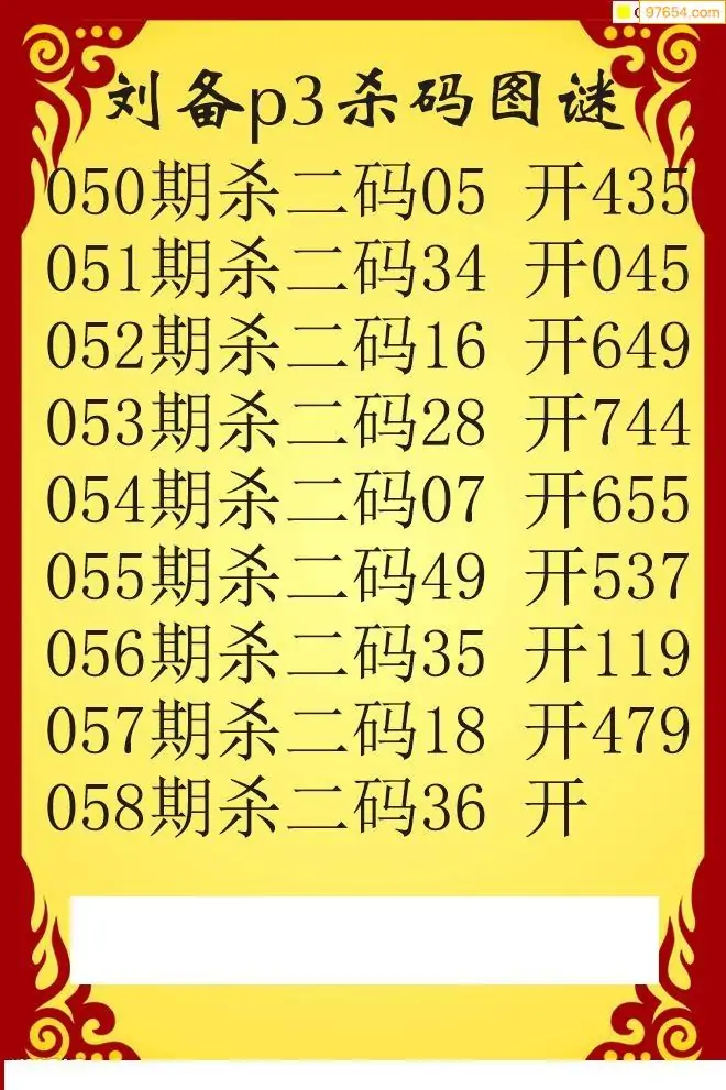 26年058期刘备p3杀码图谜