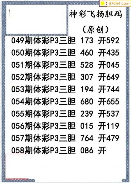 26058期神彩飞扬体彩P3三胆图谜