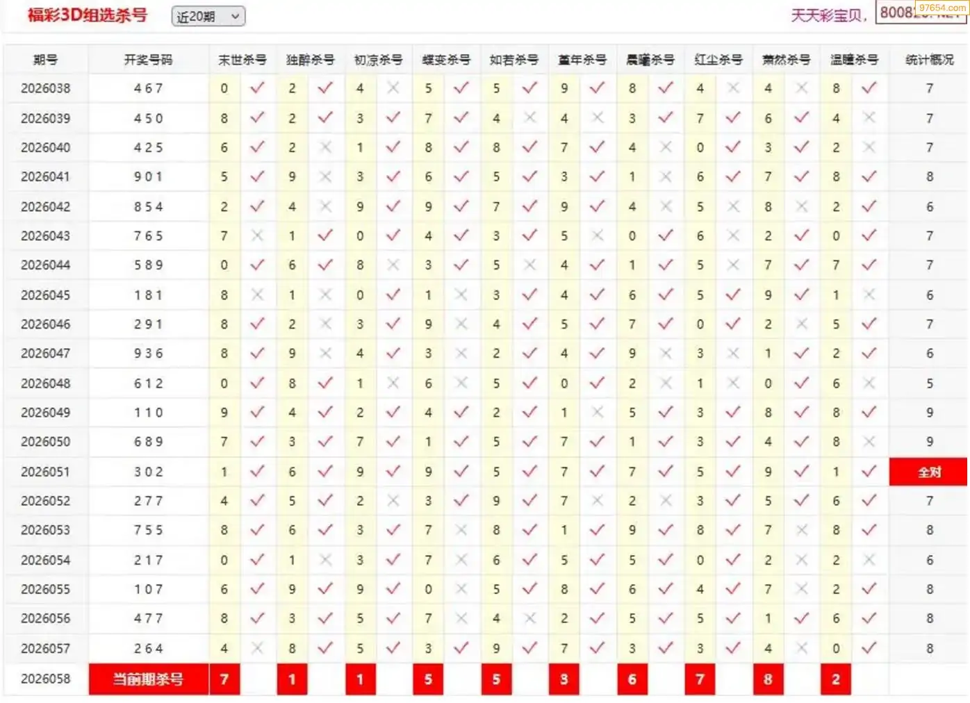 3D058期天中财神原创杀码条件汇总