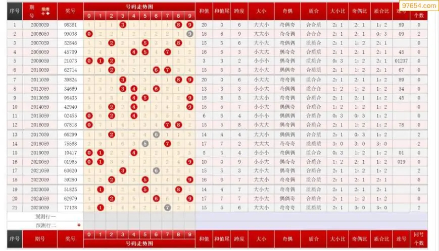059期排列三历史号码对比图+数据走势分析